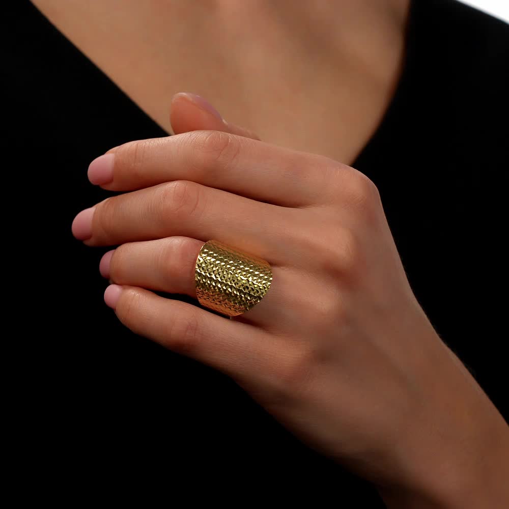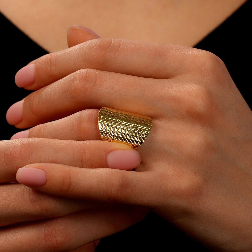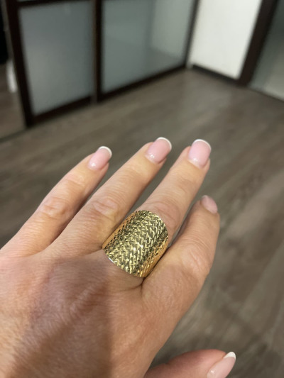 Кольцо притягивает абсолютно все взгляды! Лимонное, дутое золото, легкое, удобное. Покупкой довольна, спасибо ,Санлайт!