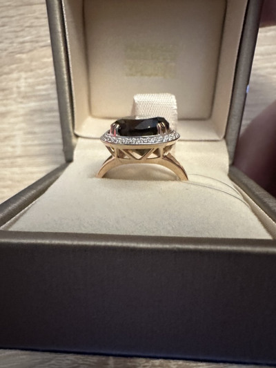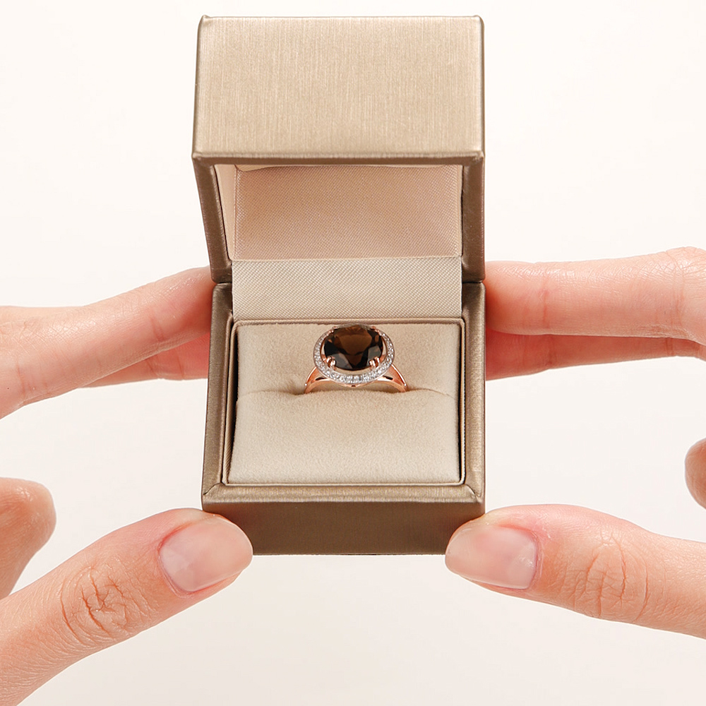 В редких случаях характеристики украшения или упаковка могут иметь отличия от представленных на фото или в описании.Кольцо с 1 кварцем дымчатым природным, 3.64 карат;