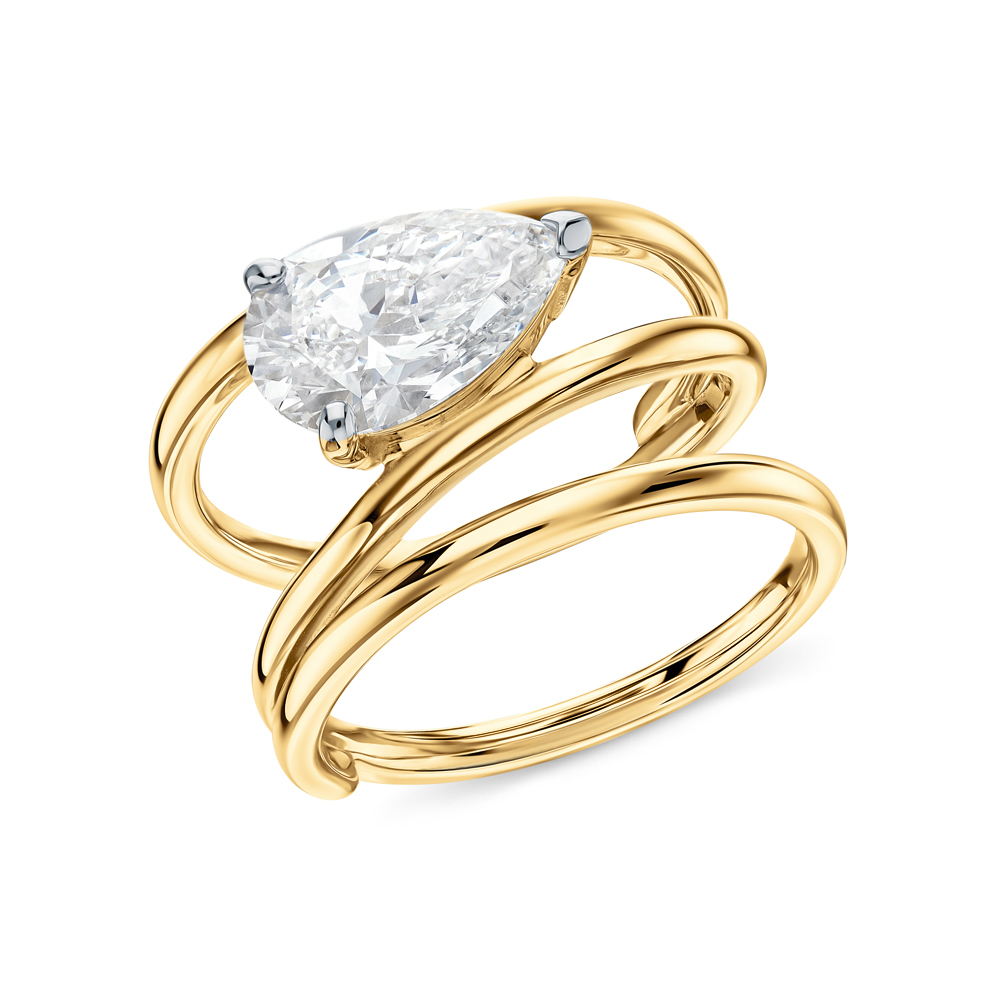 Кольцо с 1 бриллиантом выращенным, 1.9 карат, огранка груша 56 граней, цвет 3, чистота 5, тип огранки А;