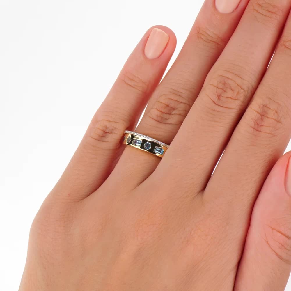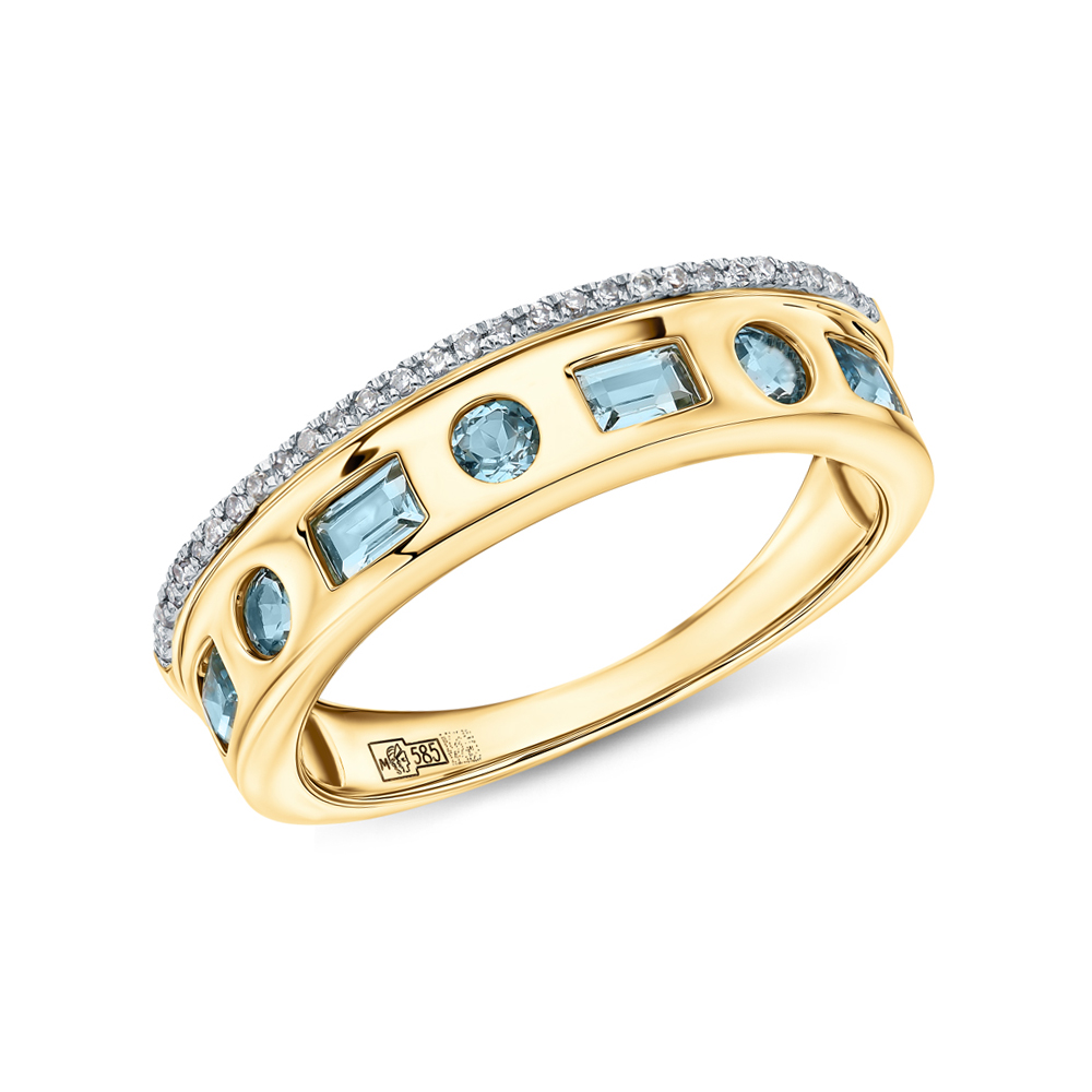 Золотое кольцо с бриллиантами природными и топазами природными