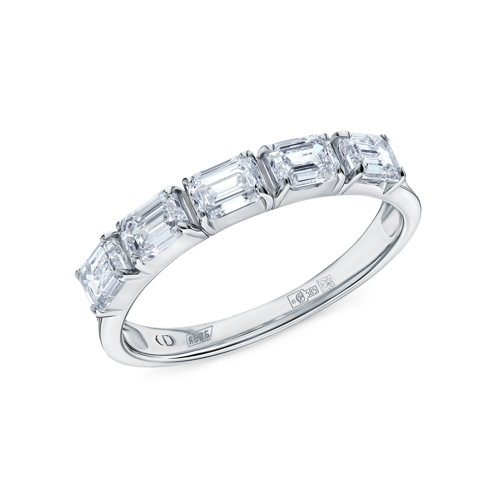 Кольцо с 5 бриллиантами выращенными, 1.18 карат, огранка изумрудная 65 граней, цвет 3, чистота 5, тип огранки А;