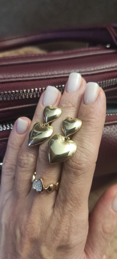 Серьги и кольцо не комплектные, но очень похожи и поэтому можно совместно носить. Выходной комплект