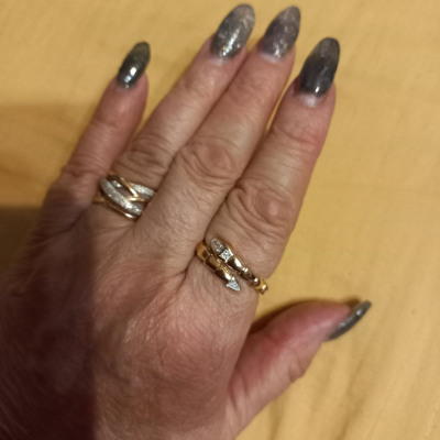 Великолепно смотрится в паре с другим кольцом ( тоже с бриллиантами ) . Змея - на указательным, а другое - на безымянном пальце. Рекомендую к покупке.