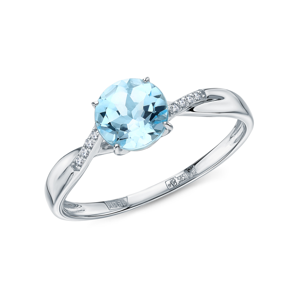 Золотое кольцо с бриллиантами природными и топазами природными
