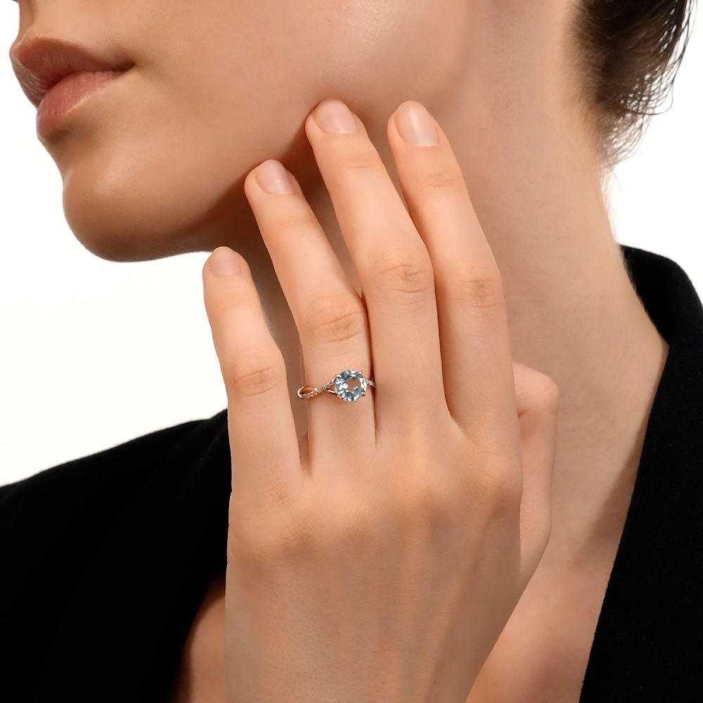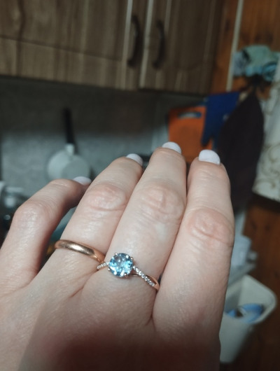 В редких случаях характеристики украшения или упаковка могут иметь отличия от представленных на фото или в описании.Кольцо с 1 топазом скай природным, 1.52 карат;