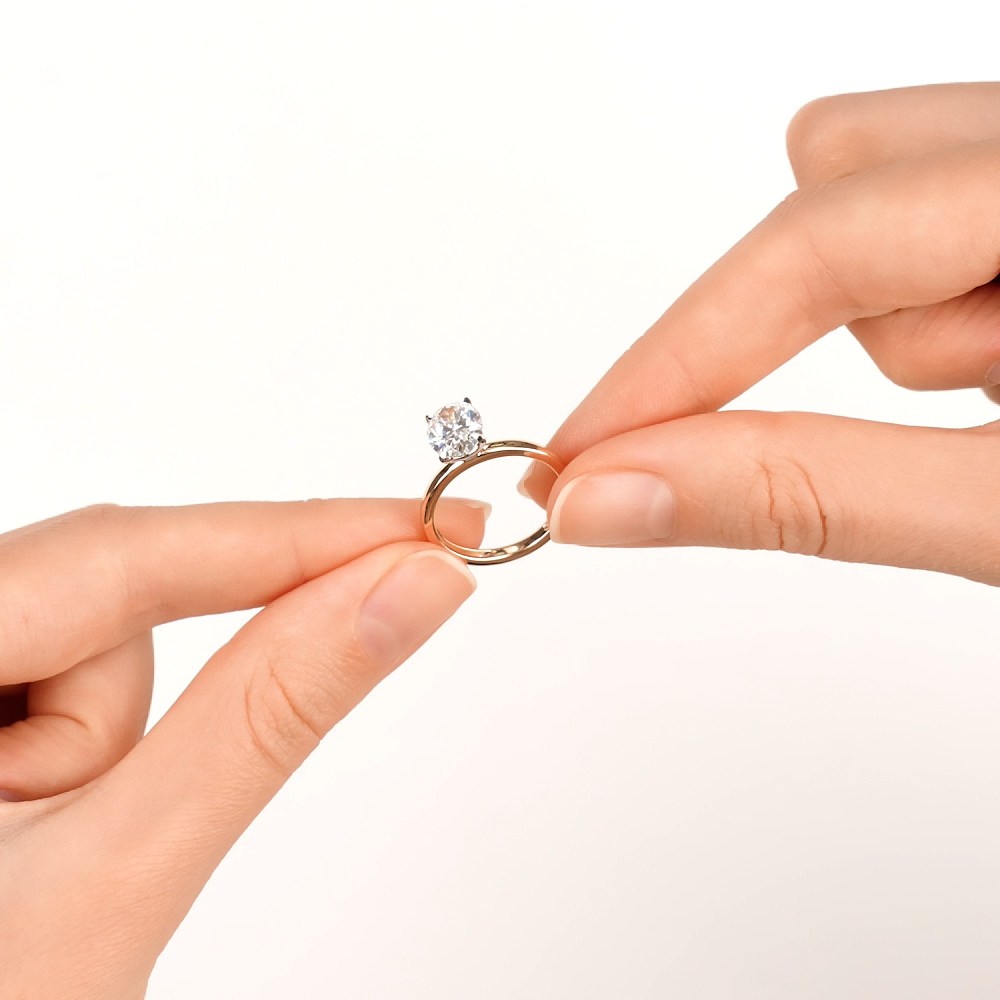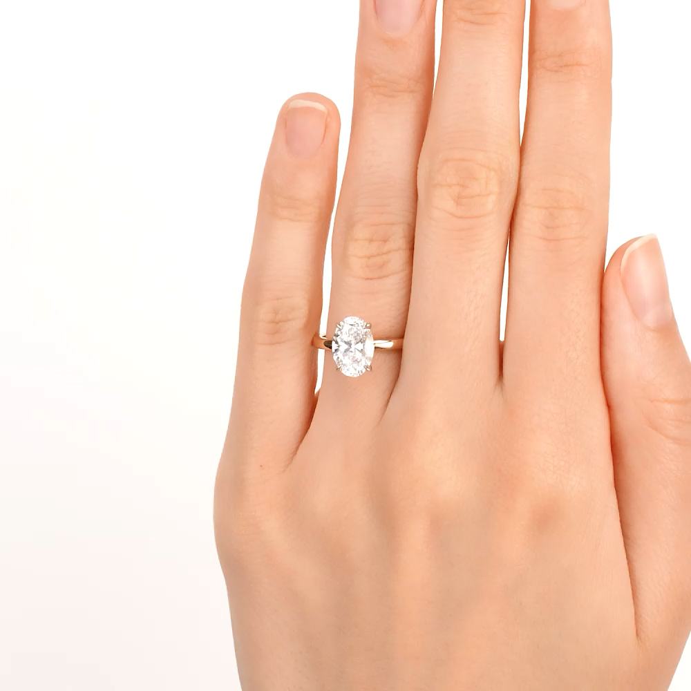 Кольцо с 1 бриллиантом выращенным, 2.01 карат, огранка овал 57 граней, цвет 4, чистота 5, тип огранки А;
