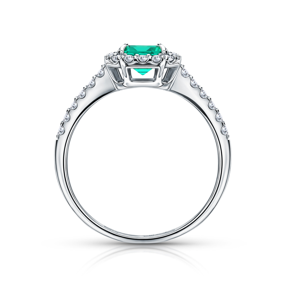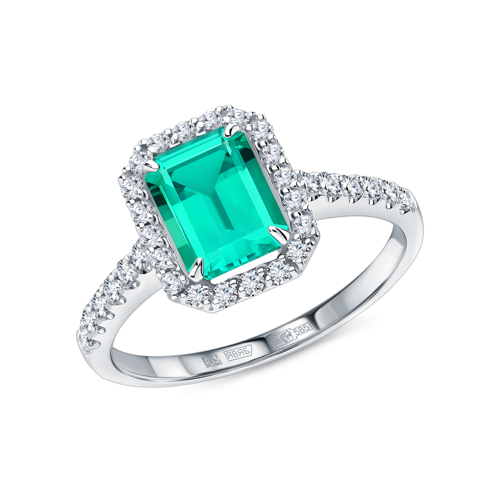 Золотое кольцо с бриллиантами выращенными и изумрудами выращенными