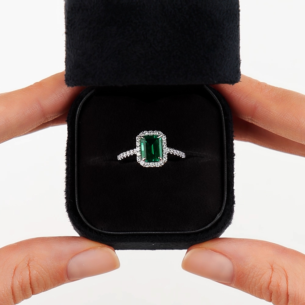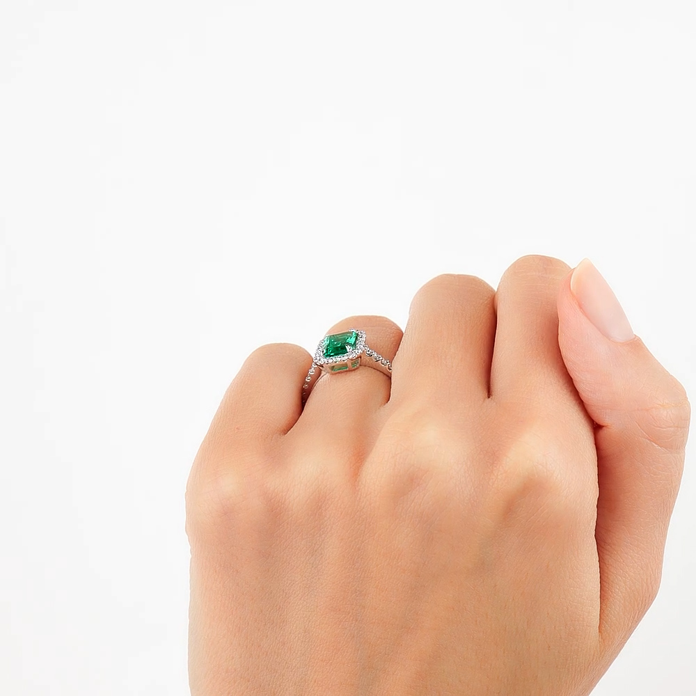 Кольцо с 1 изумрудом выращенным Колумбия, 1.32 карат;