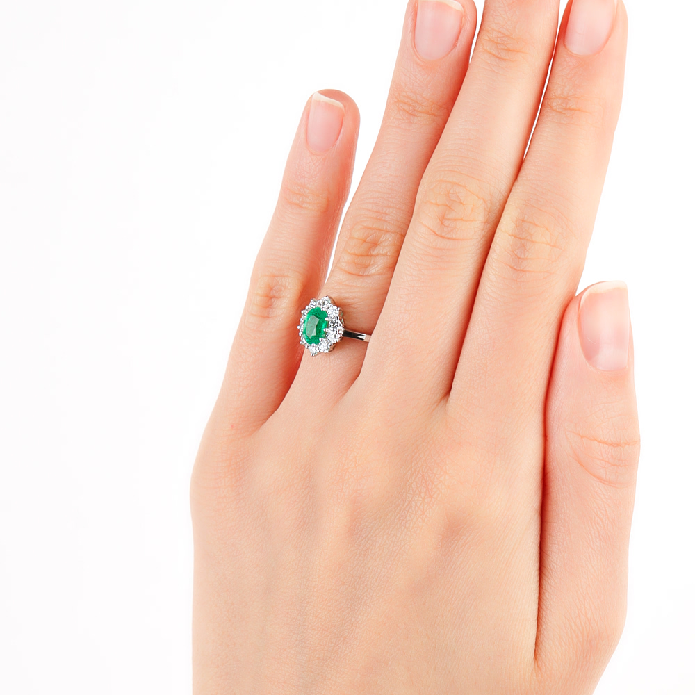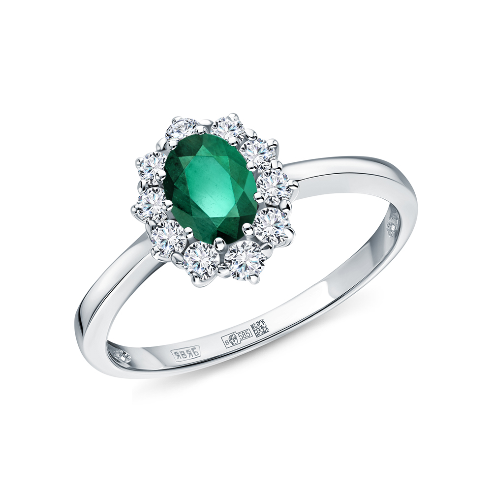 Золотое кольцо с бриллиантами выращенными и изумрудами выращенными