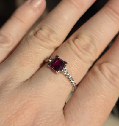 Красивое аккуратное кольцо. Не очень люблю сочетание белого золота и красного камня, но это кольцо-исключение. Очень эффектно смотрится