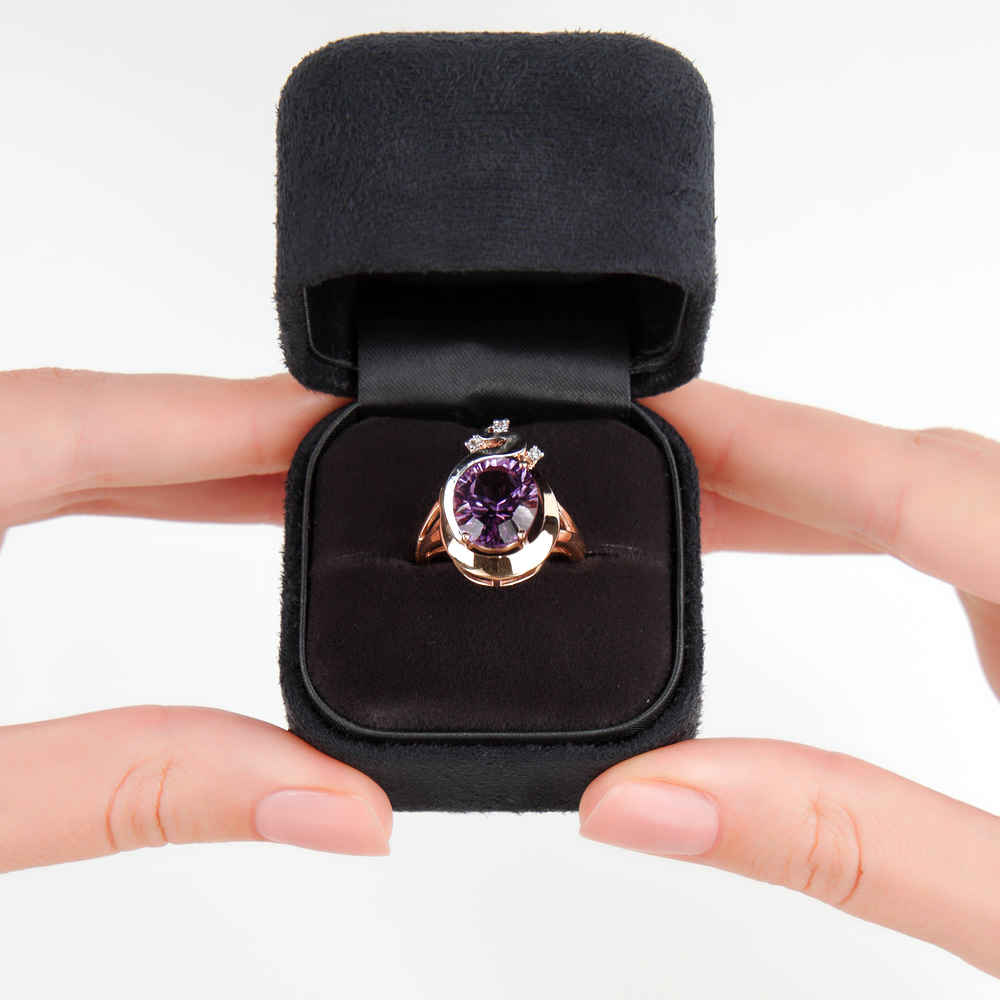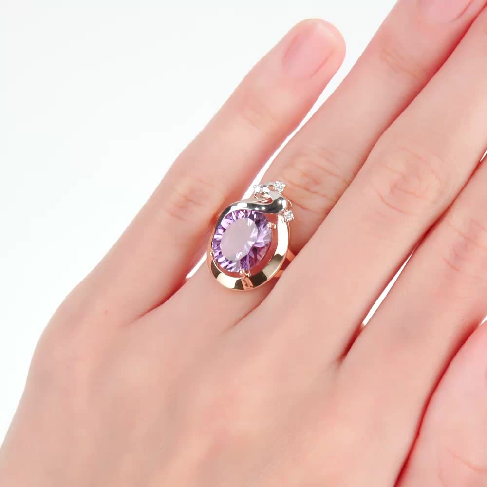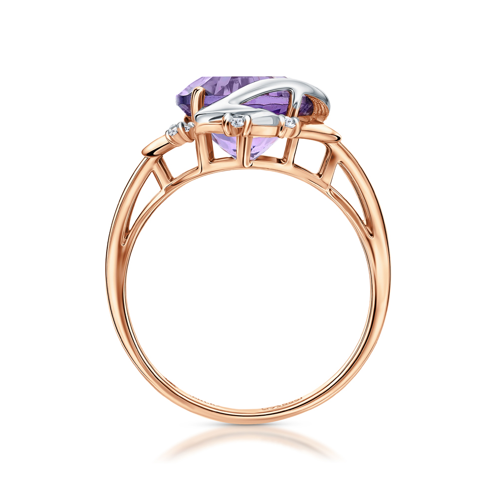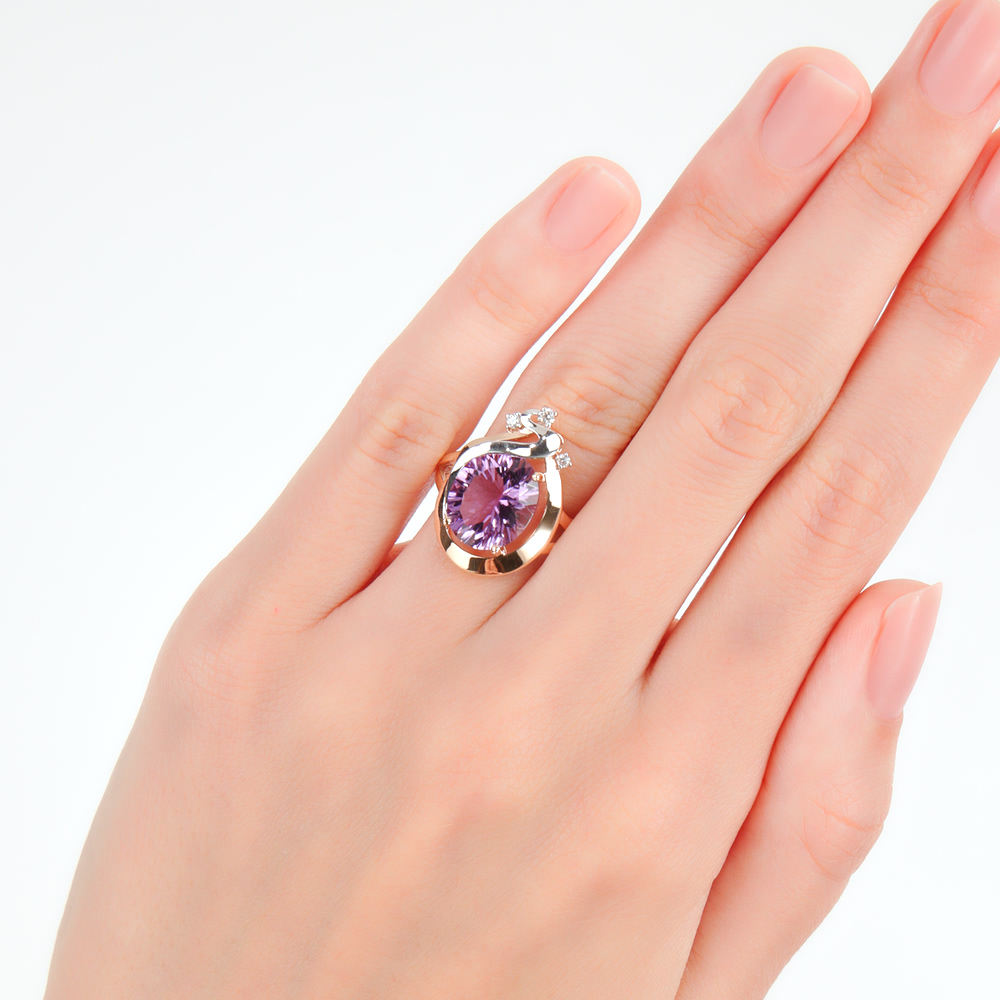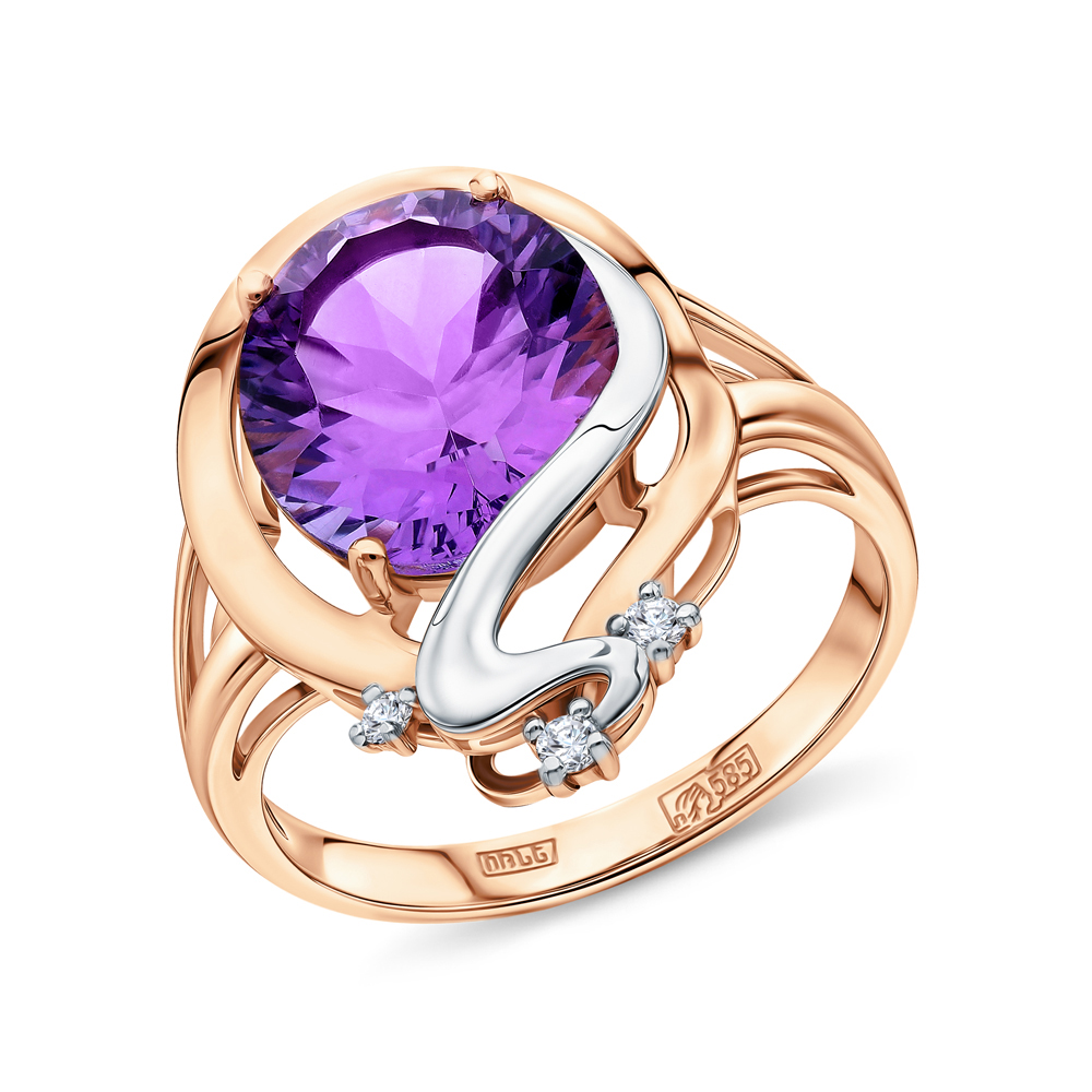 Золотое кольцо с бриллиантами природными и аметистом природным