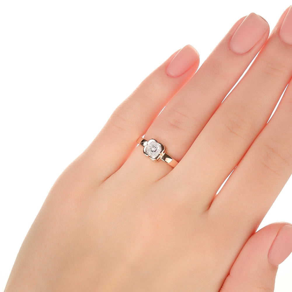 Кольцо с 1 бриллиантом природным, 0.004 карат, огранка круг 57 граней, цвет 3, чистота 6, тип огранки А;