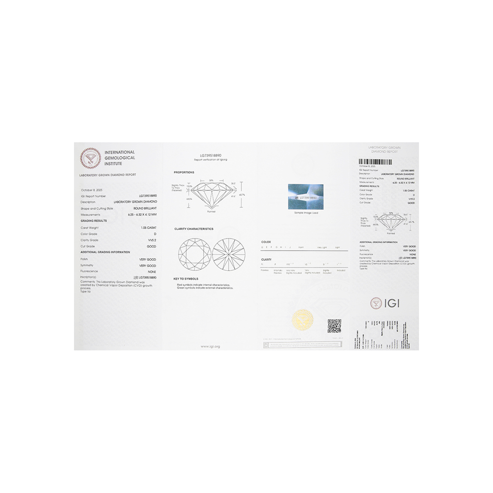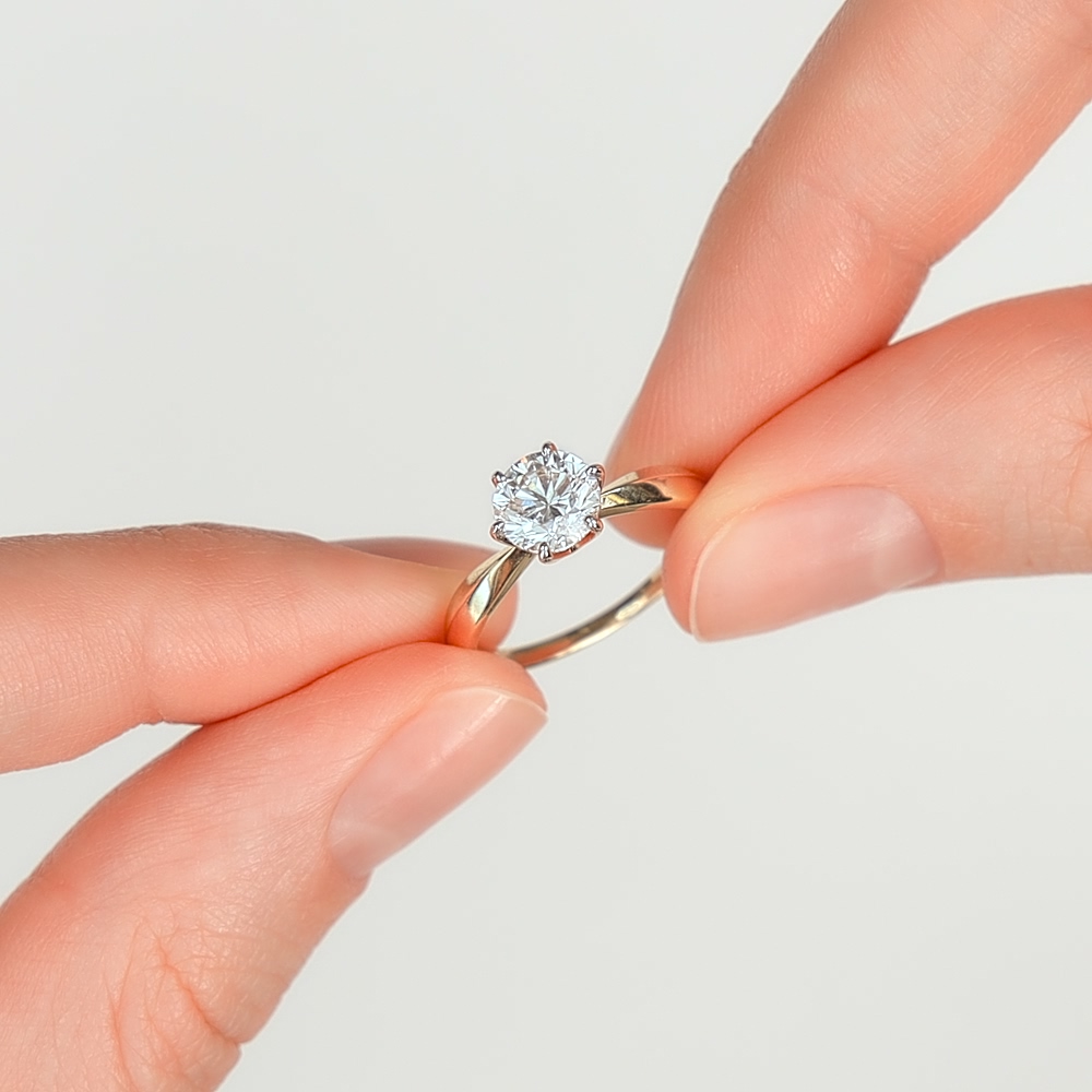 Кольцо с 1 бриллиантом выращенным, 1.01 карат, огранка круг 57 граней, цвет 4, чистота 5, тип огранки А;