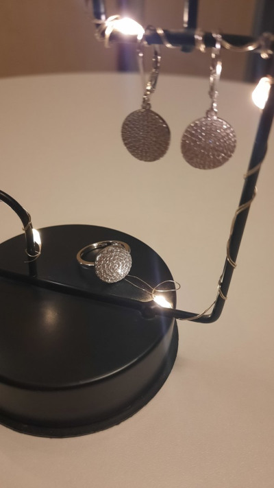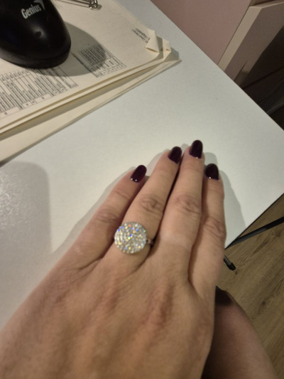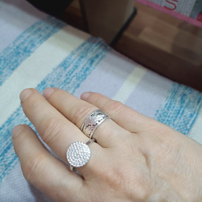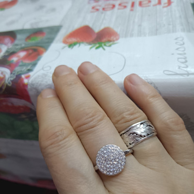 Здравствуйте, колечко очень красивое, нереально блестит в свете электрической лампы. Ещё купила серьги.