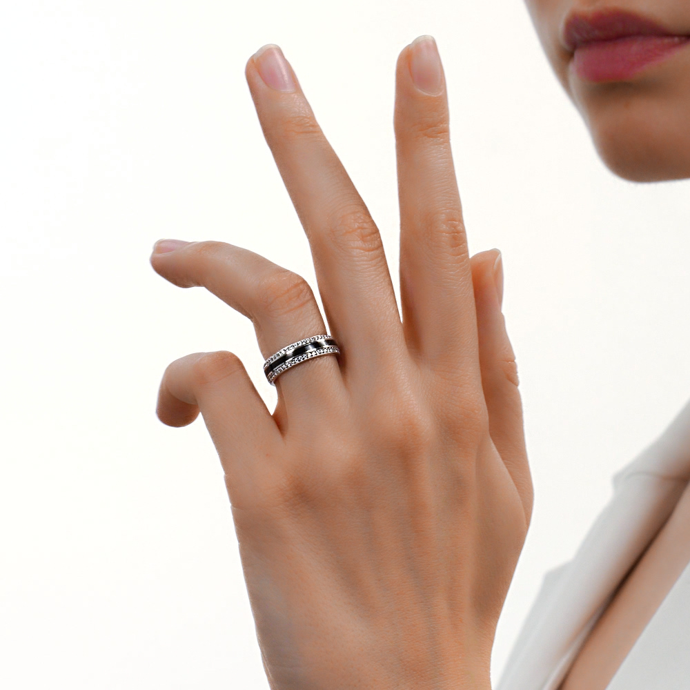 Кольцо, вставка: эмаль черная;