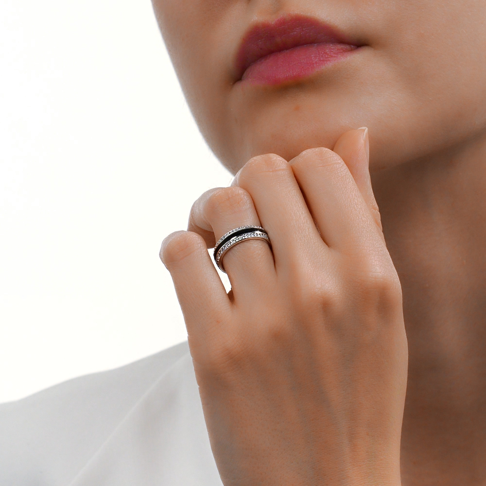 Серебряное кольцо с эмалью и фианитами