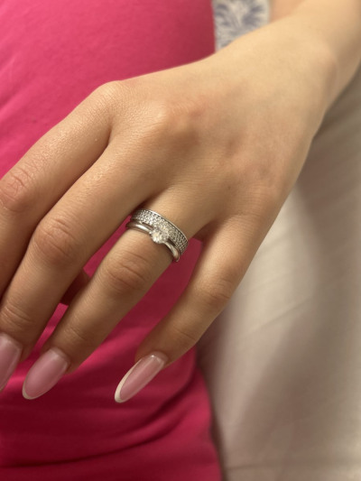 Сочетает в себе роскошь,современный стиль. Роскошно мерцает. Эффектно смотрится на пальце