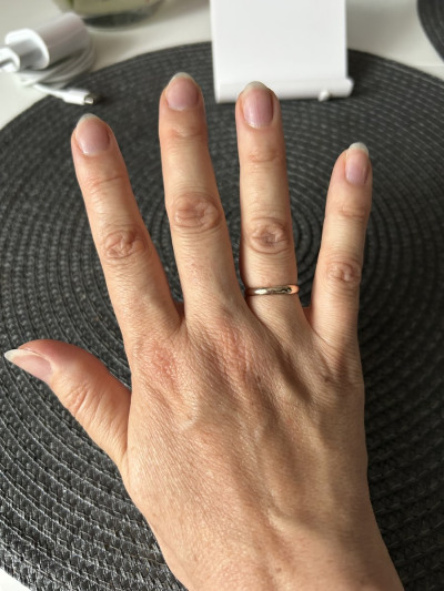 Очень люблю минимализм, по этому выбрали такое красиво колечко, очень красивое и удобное, на руке даже не чувствуется
