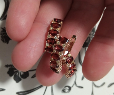 Серебряное кольцо с фианитами и гранатами природными