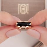 Любовь случилась с первой фотографии. Это колечко сразу же покорило моё сердце своей нестандартностью. Никакой вычурности дизайна, сдержанная и строгая красота в простоте. Оно просто невероятное. Шарма изделию придаёт чёрный Агат прямоугольный формы. Поверхность отшлифована идеально, на гранях нет никаких шероховатостей. Оно совершенно не плоское, а немного приподнятое, возвышается над пальцем. Смотрится дорого, обращает на себя внимание. Украшение, которое рядом с собой абсолютно не требует компании.