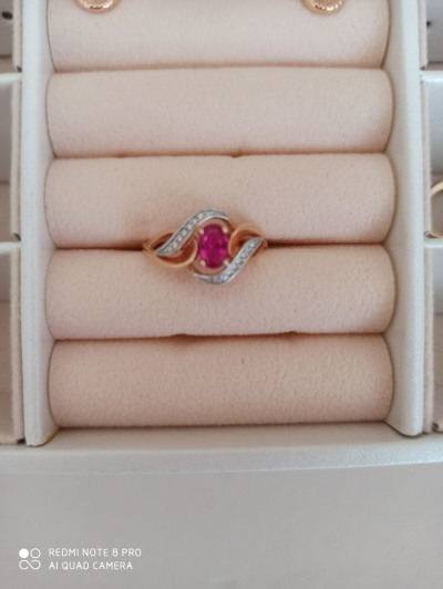 Листала каталог и увидела колечко к моим сережкам, купила, правда в серьгах рубин натуральный, а в кольце нет, но разница не особо заметна, осталась довольна