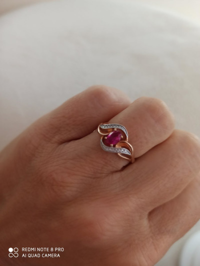 Красивое кольцо по приемлемой цене, камень хоть и синтетический, но отлично подошел по цвету к натуральному гретому рубину