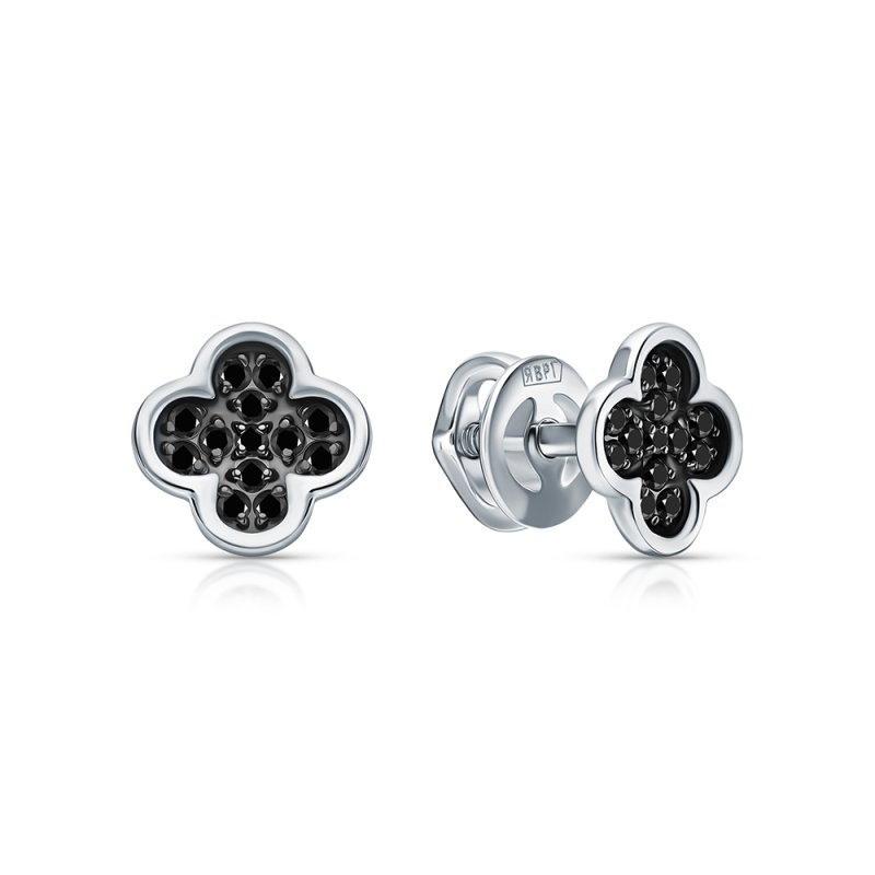 Серьги с 8 бриллиантами выращенными, 0.66 карат, огранка круг 57 граней, цвет 3, чистота 6, тип огранки А; 2 бриллиантами выращенными, 0.04 карат, огранка круг 57 граней, цвет 3, чистота 6, тип огранки А; 48 бриллиантами выращенными, 0.33 карат, огранка круг 57 граней, цвет 3, чистота 6, тип огранки А; Белое золото 585 пробы.