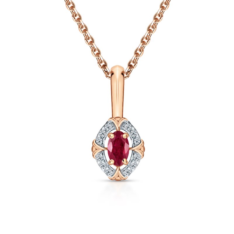 Кольцо с 32 бриллиантами природными, 0.068 карат, огранка круг 17 граней, цвет 2, чистота 2; 1 рубином природным, 0.433 карат, цвет 2, чистота 2; 2 рубинами природными, 0.061 карат, цвет 2, чистота 2; Розовое золото 585 пробы.